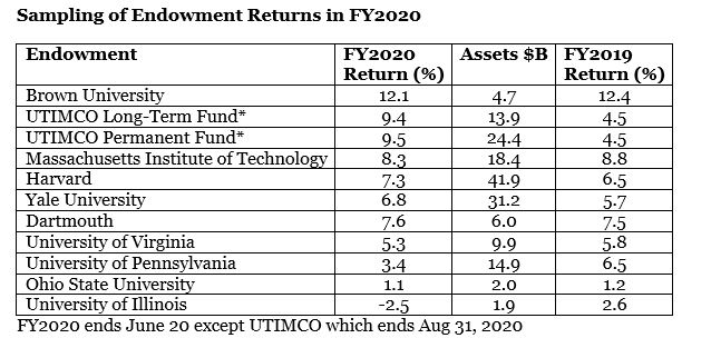 Brown University reported a 12.1% return for FY2020, ending June 30. Assets in the endowment increased to $4.7 billion. So [Read More]
